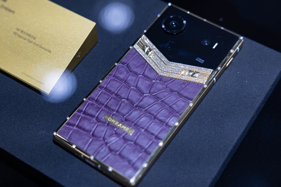 镶嵌了198颗自然高定钻石的手机。