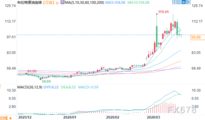 布伦特原油邻接日线图 来源:易汇通北京时辰3月25日15:20 布伦特原油邻接 报 99.88 好意思元/桶