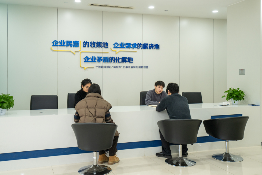 联盟注重发挥社会力量作用,“金牌老娘舅”队伍由企业资深党组织书记、工会主席等组成,成为员工信赖的诉求渠道与矛盾终点站;企业HR等新生力量的加入,则为调解工作注入专业活力。运行以来,“湾企和”累计受理纠纷1300起,化解率达95%,调解案例成功获评宁波市级优秀,已成为陆中湾街道优化营商环境、提升治理效能的一张特色名片。