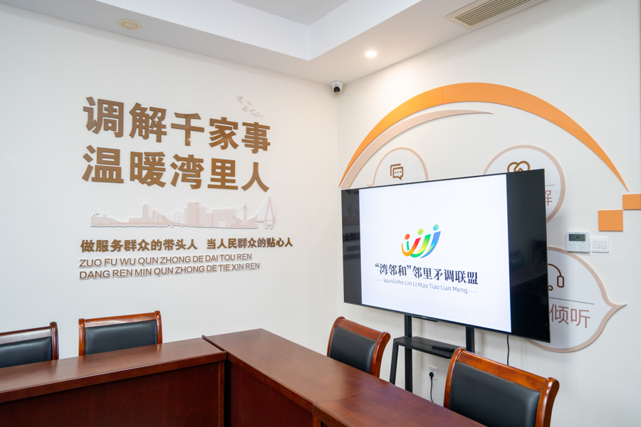 如果说“湾企和”关注的是经济发展的“硬核”环境,那么“湾邻和”则着眼于社会生活的“温情”底色。作为街道下沉治理重心、服务直达基层的关键载体,“湾邻和”于2025年7月初步组建,同年8月5日经陆中湾街道居民议事会审议通过,正式立项为“湾邻和”邻里矛调联盟,受到民众广泛关注与支持。